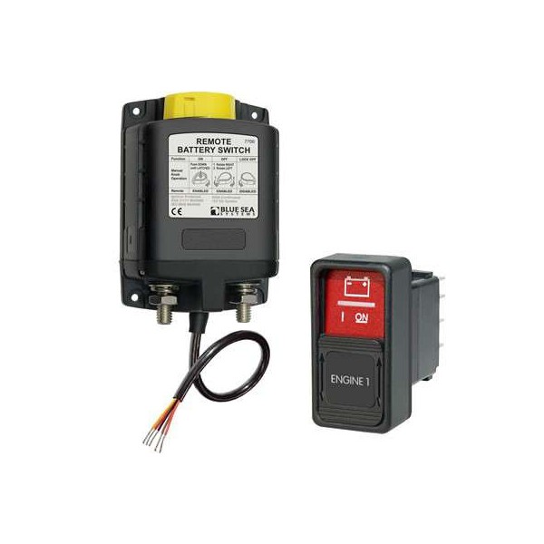 Este interrutor de bateria de relé biestável da Blue Sea Systems-regula automaticamente a carga de dois grandes bancos de baterias. Pode ser controlado manualmente utilizando o interrutor na caixa ou por controlo remoto. É um dispositivo útil para ligar e desligar rapidamente as baterias numa emergência. É fornecida uma posição OFF bloqueada para efeitos de manutenção.