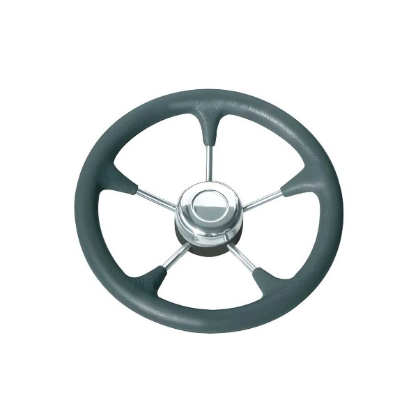 O volante T9R em poliuretano preto macio com raios em aço inoxidável tem um cone universal para compatibilidade com os cabos Ultraflex, Morse ou Teleflex.