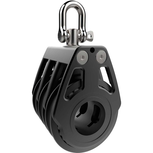 Concebida para cargas elevadas e para um cordame exigente, o bloco triplo Racing Lewmar Ø 80 mm combina uma roldana em compósito, bochechas em alumínio fresado, um rolamento central de elevada eficiência e uma articulação bloqueável.