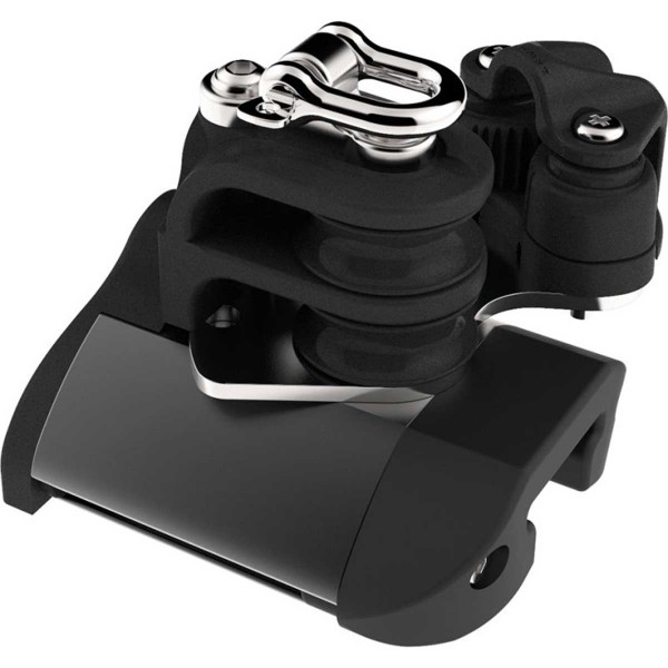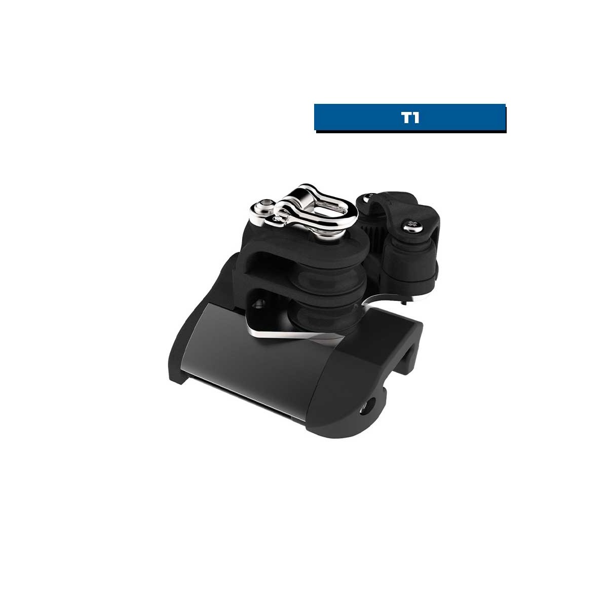 Os batentes Lewmar T1 HTX versão porto com roldana dupla, argola e presilha foram concebidos para fixar o fim de curso do carrinho, simplificando as regulações.