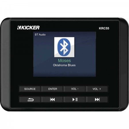 O ecrã remoto KRC55 da KICKER controla o seu rádio marítimo KMC5 a partir do cockpit ou da cabina. O seu ecrã LCD a cores de 2,5" facilita a leitura das informações e os seus botões gerem a fonte, o volume, a faixa e as suas músicas favoritas.