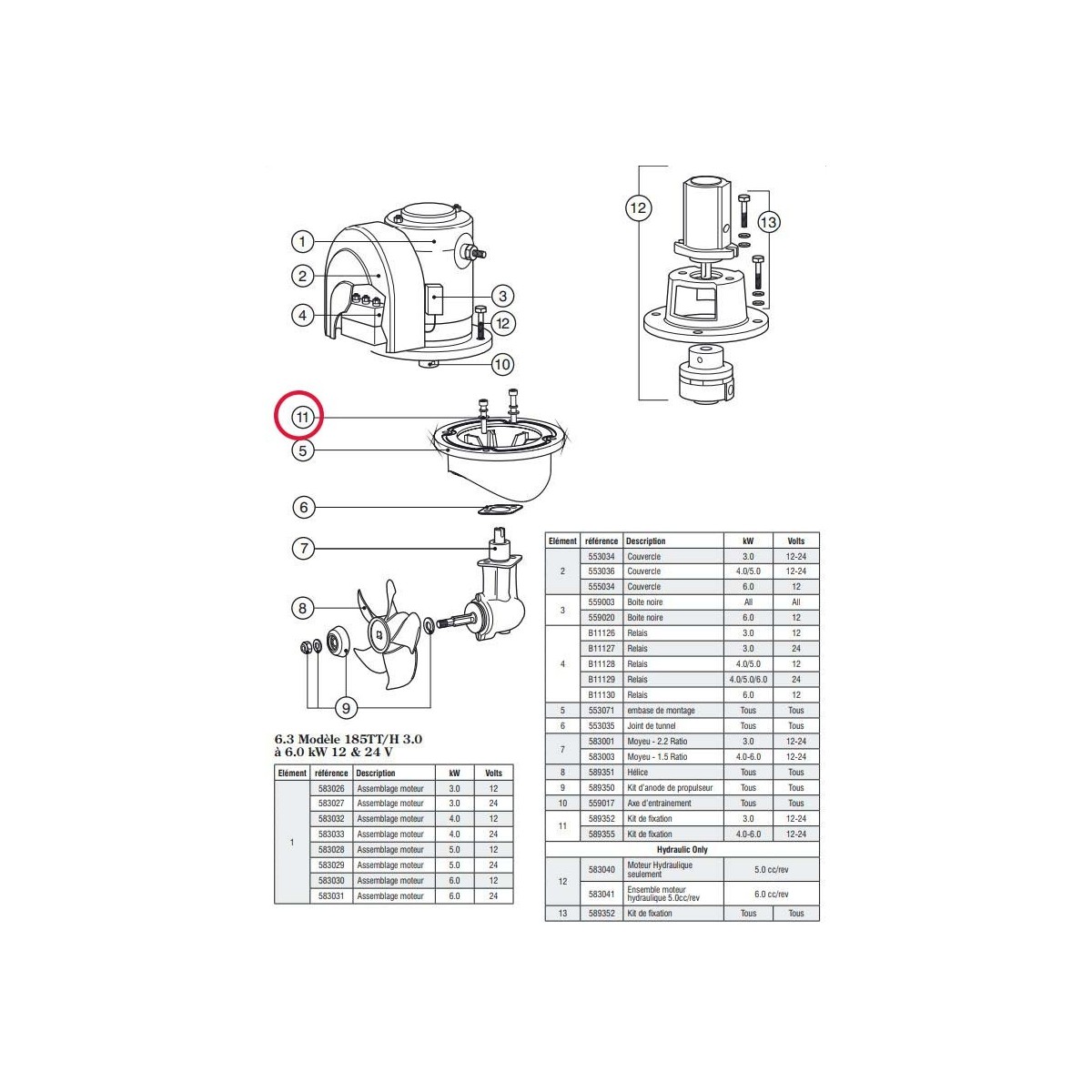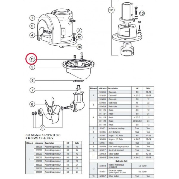 Kit de parafusos de fixação para o propulsor Lewmar 185TT 4.0 e 6.0kW