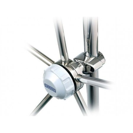 O suporte de roda de varanda pode ser utilizado na maioria das varandas de iates para arrumar a roda quando não está a ser utilizada, para manter o cockpit livre.