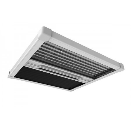 Tela sólida contra insectos para proteção e ventilação. A persiana opaca garante uma escuridão total.