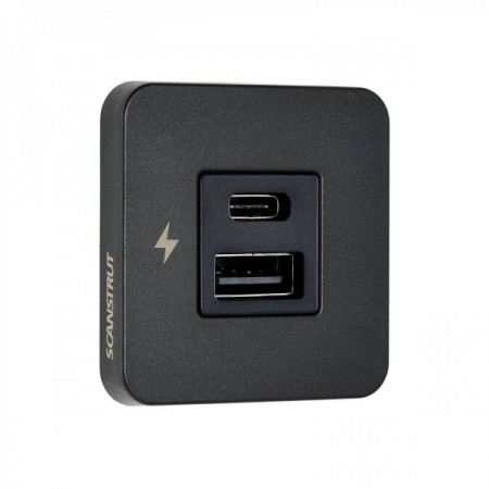 Carregador USB para interior-A / USB-C - Preto