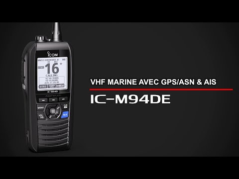 O IC-M94DE é o primeiro rádio portátil que permite aos utilizadores receberem informações transmitidas por outras embarcações equipadas com AIS. Bateria com duração de 10 horas. Potência de saída RF de 6 W. Receptores DSC e GNSS integrados.