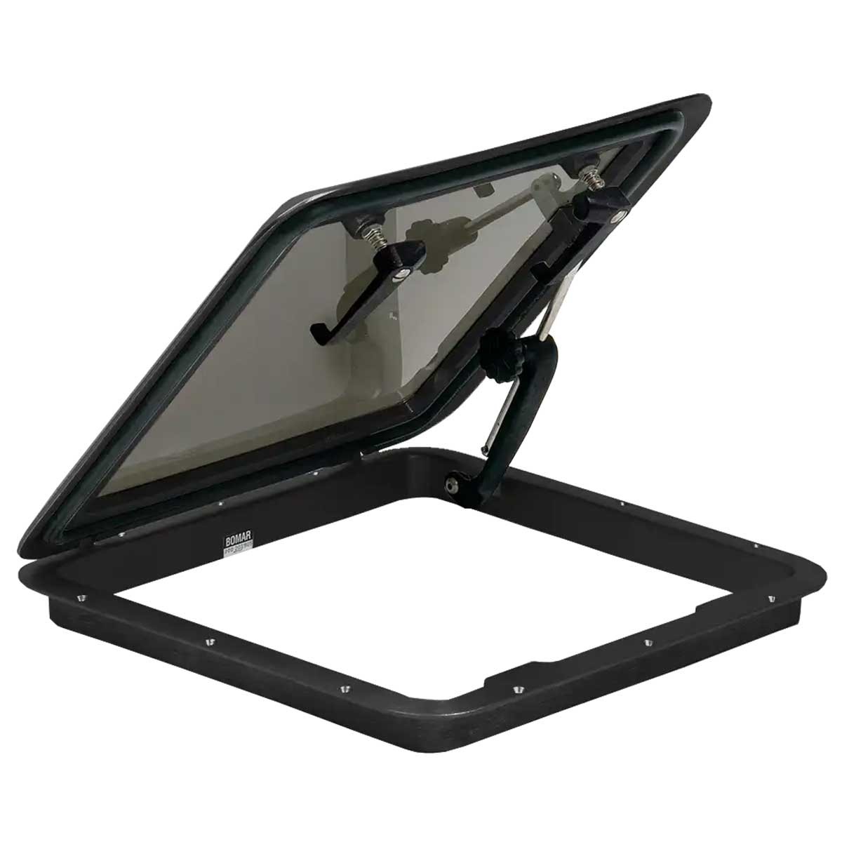 A escotilha de convés preta Flushdeck de 394 x 521 mm pode ser utilizada para substituir uma escotilha de convés existente no seu barco, ou para o tejadilho da sua caravana,-carro ou veículo de lazer. Com apenas 2,5 cm de espessura, também pode ser utilizada na perfeição como claraboia.