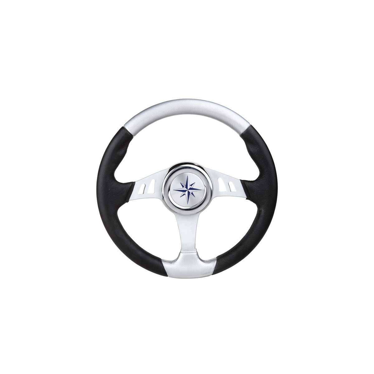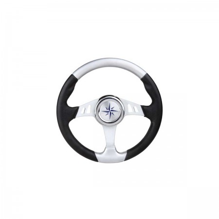 O volante Skipper preto e prateado de 35 cm de diâmetro com raios prateados é fabricado em poliuretano macio para maior resistência.